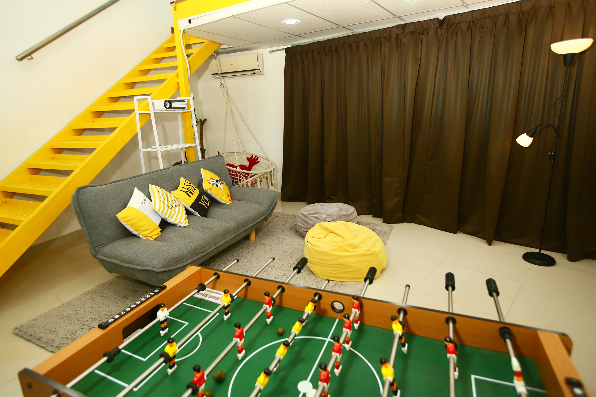 Immerse yourself in unparalleled comfort and entertainment with in-house amenities such as a soccer table, comfy bean bags, and a relaxing swing.